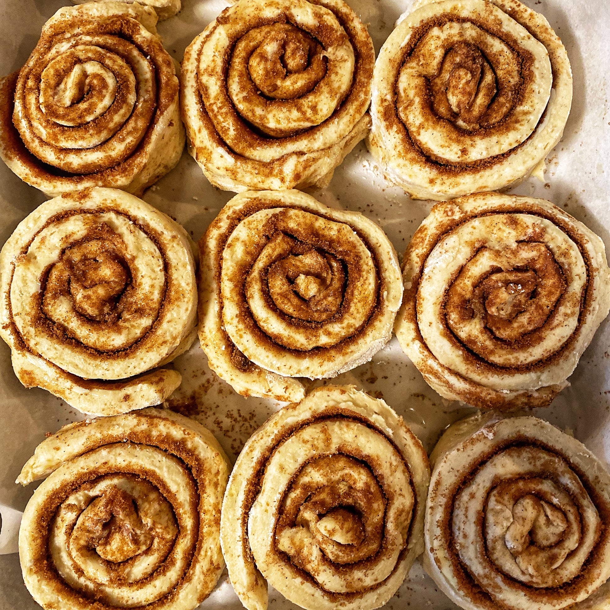 These cinnamon rolls are made using gluten-free ingredients but are prepared in a shared kitchen that also handles gluten. They are not produced in a certified gluten-free kitchen.