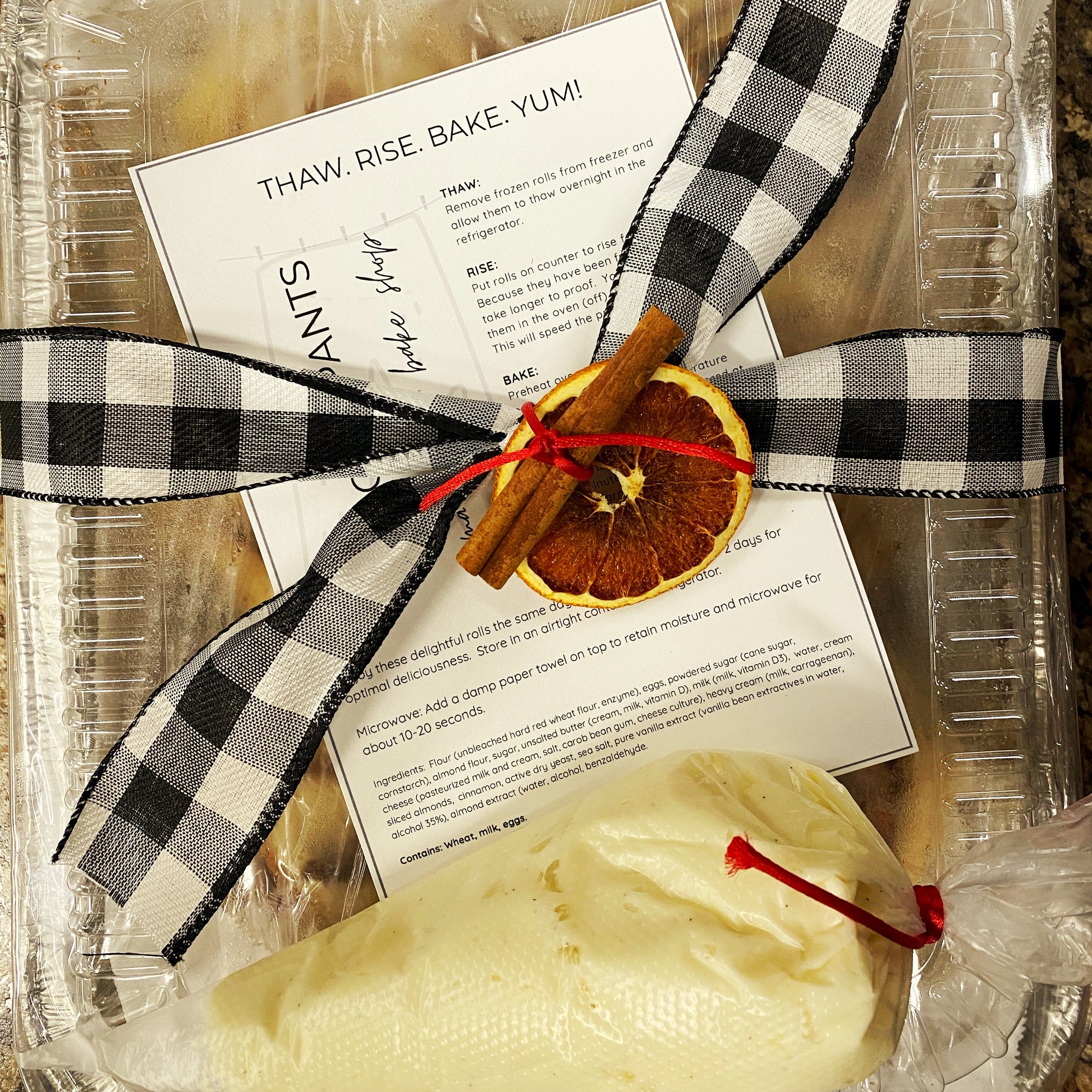 These are my classic cinnamon rolls, fully assembled and frozen so you can bake them fresh at home whenever you’re ready.